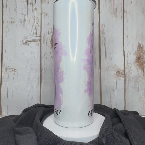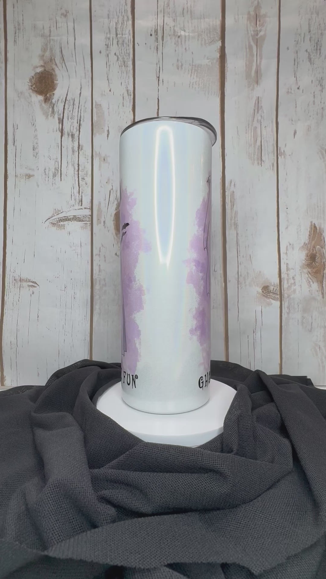 Shimmer white 20 oz tumbler decorated with color sublimation print