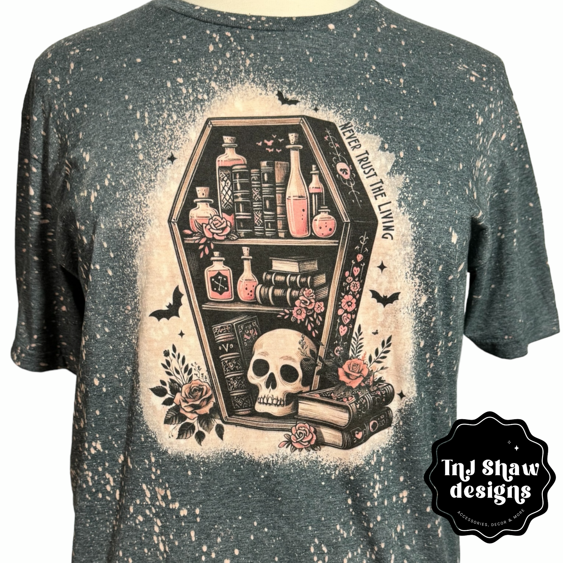 Halloween Unisex Tee - Never Trust the Living - Bleached Tye Dye Effect