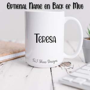 Our shop name in small printed text "TnJ Shaw Designs" will be printed on the reverse side of the mug near the bottom