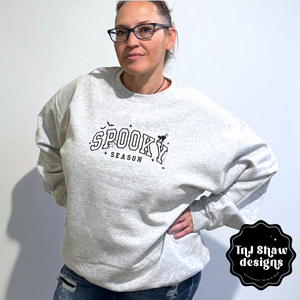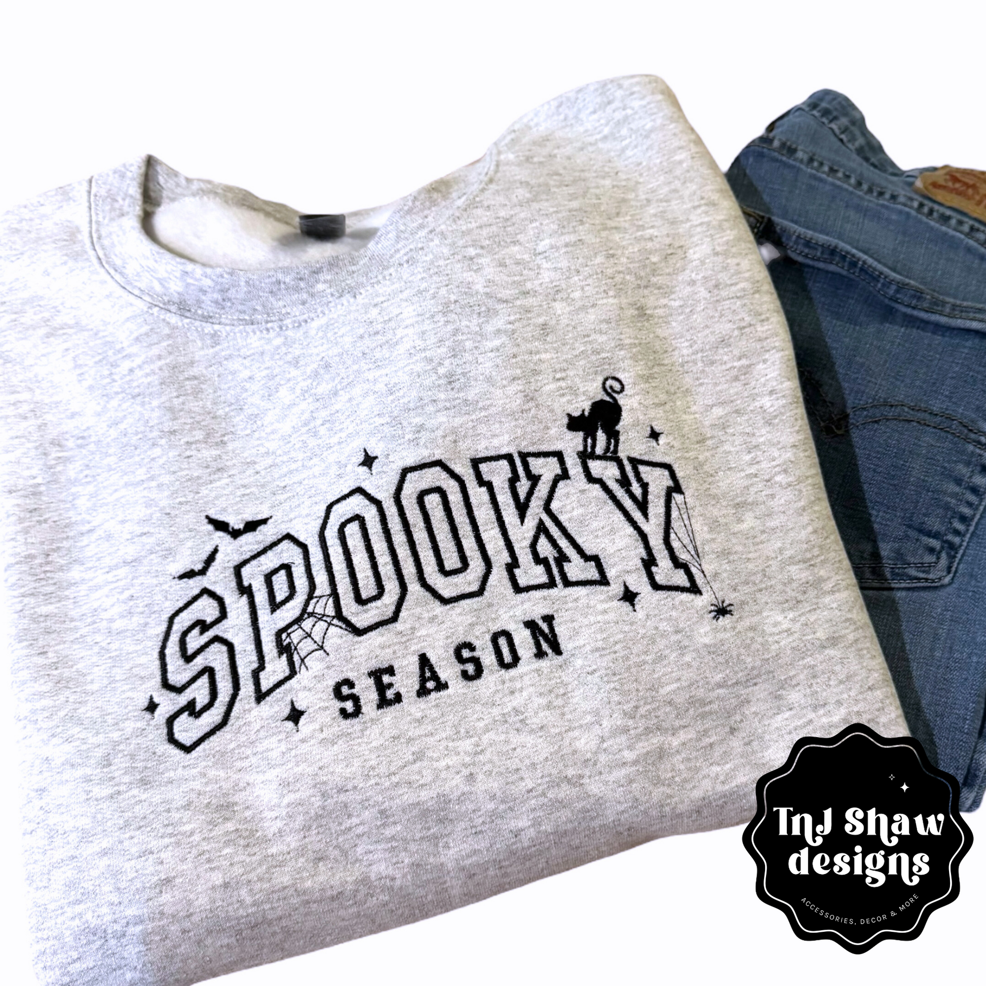 Unisex sized soft sweatshirt embroidered with Spooky Season image
